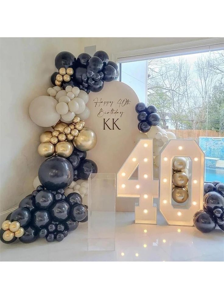 Elevate your birthday celebration with this stunning black and golden royal balloon arch setup. Featuring elegant black and gold balloons...
